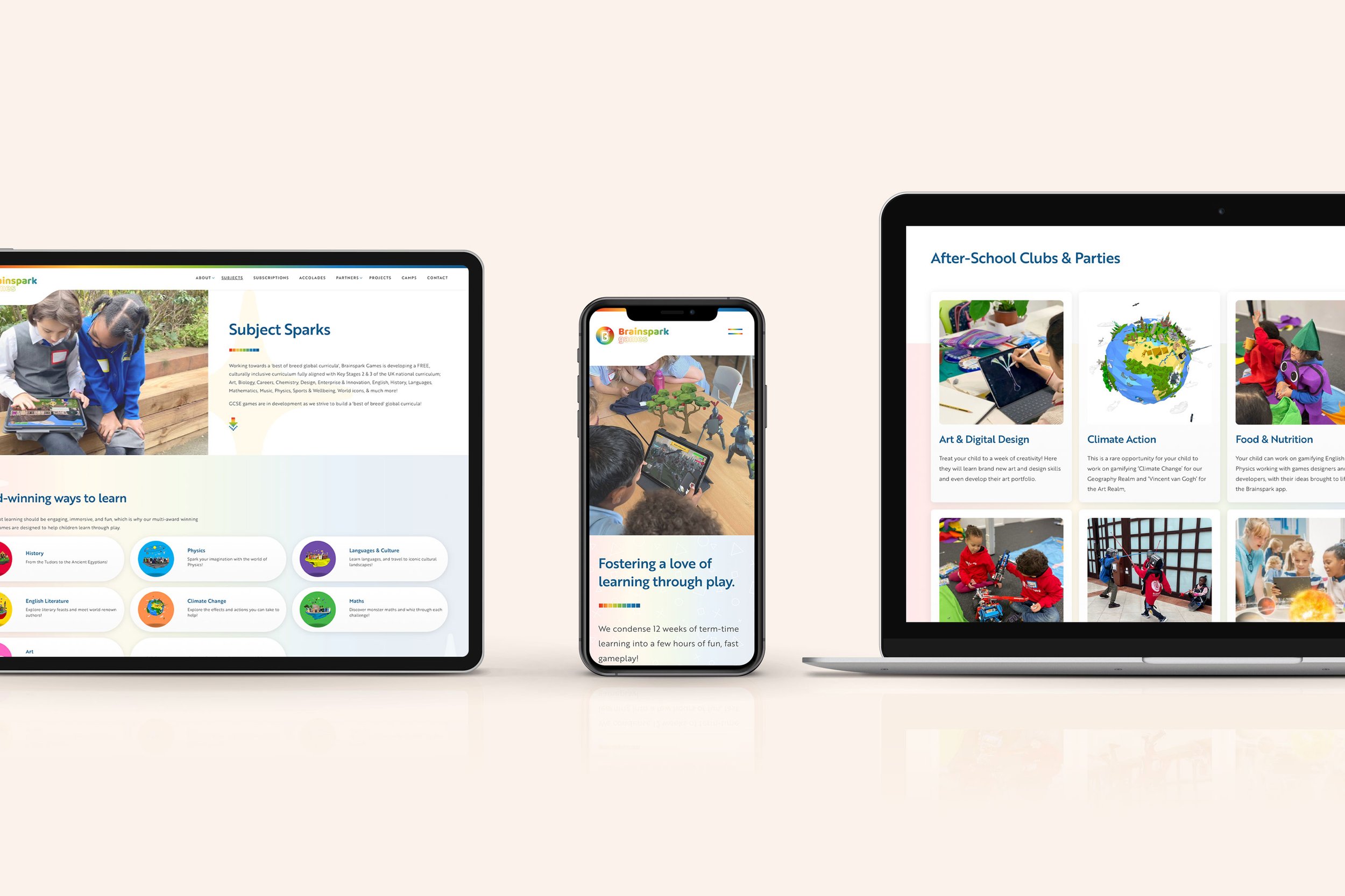 Brainspark Games produces bite-size topic games and gamified GCSEs so that children can retain knowledge without spending all their time on devices, and ultimately acquire more qualifications. Therefore they needed to have a fun and appealing brand, and website that was clear and efficient in providing more information to potential subscribers, like parents and teachers.